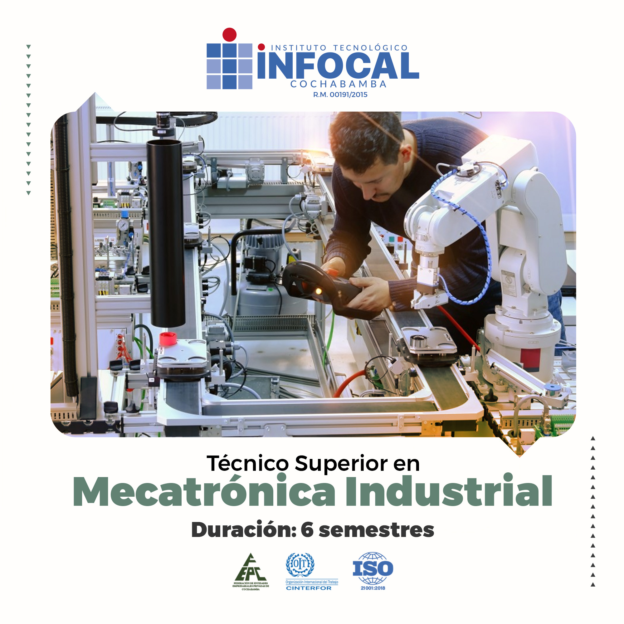 - Mecatrónica Industrial: Fusiona mecánica, electrónica e informática para el manejo de robótica industrial y sistemas automatizados mediante PLCs.
